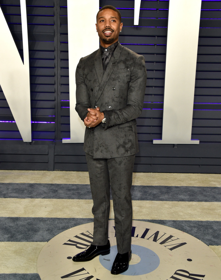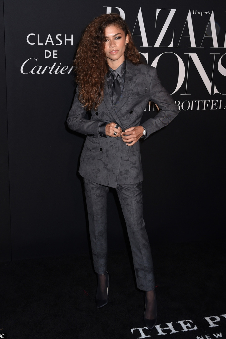 Zendaya e Michael B. Jordan apostaram em ternos cinza-carvão texturizados com camisas no mesmo tom. Zendaya também acrescentou uma gravata ao seu visual