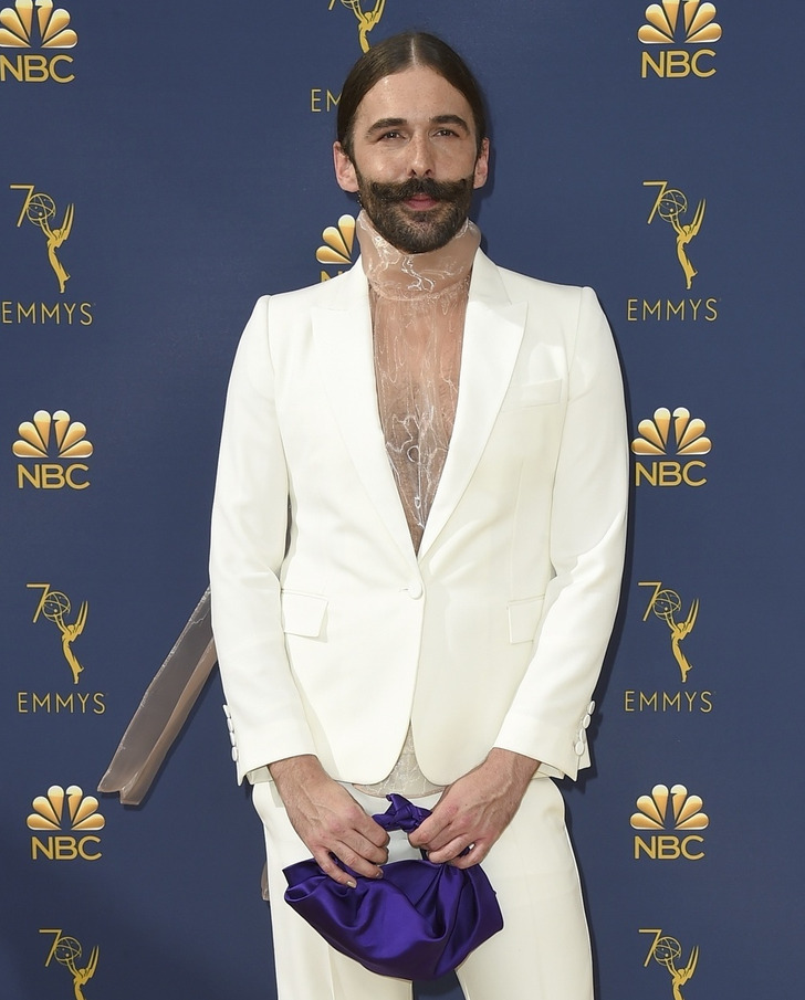 Davina McCall e Jonathan Van Ness combinaram blusas transparentes de gola alta com blazers clássicos