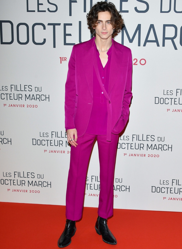 Zendaya e Timothée Chalamet usaram ternos fúcsia com camisas combinando