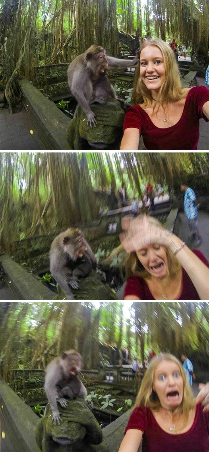 Quando você só queria fazer uma bela foto ao lado de um macaquinho, mas algo dá errado. Muito errado