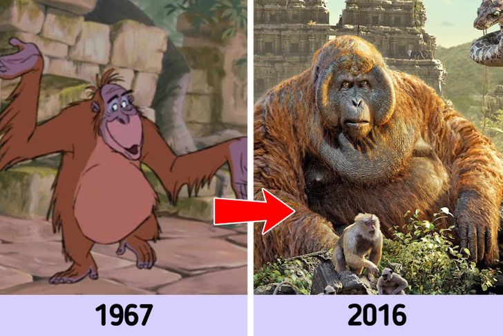 No filme Mogli — O Menino Lobo, de 2016, o Rei Louie não é um orangotango, como o da animação. No filme de 1967, o personagem é um Gigantopithecus, uma espécie enorme e predecessora dos gorilas, cujos exemplares se pareciam com os orangotangos. A mudança ocorreu porque esses últimos não são nativos da Índia, o que não é o caso do Gigantopithecus, pois, acredita-se que a espécie tenha habitado algumas partes do país onde a história se passa. Além disso, seu aspecto contribui para o porte de monarca do personagem.