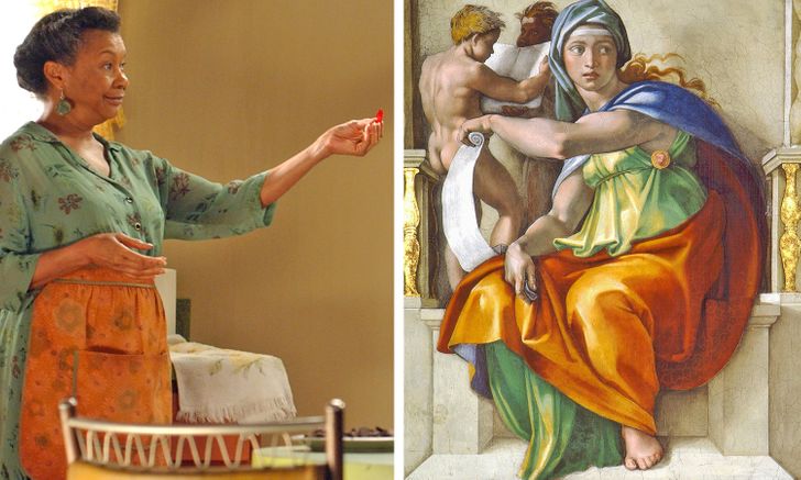 Nos filmes da franquia Matrix, vemos uma doce mulher como o Oráculo. Ela se encontra em uma cozinha e veste roupas simples nas cores verde e laranja. Embora se pareça com uma pessoa comum, é possível que o idealizador da personagem tenha se inspirado na pintura de Michelangelo, Sibila Délfica. A figura é uma sacerdotisa profética da mitologia greco-romana, cujas habilidades se assemelham às do Oráculo de Matrix.