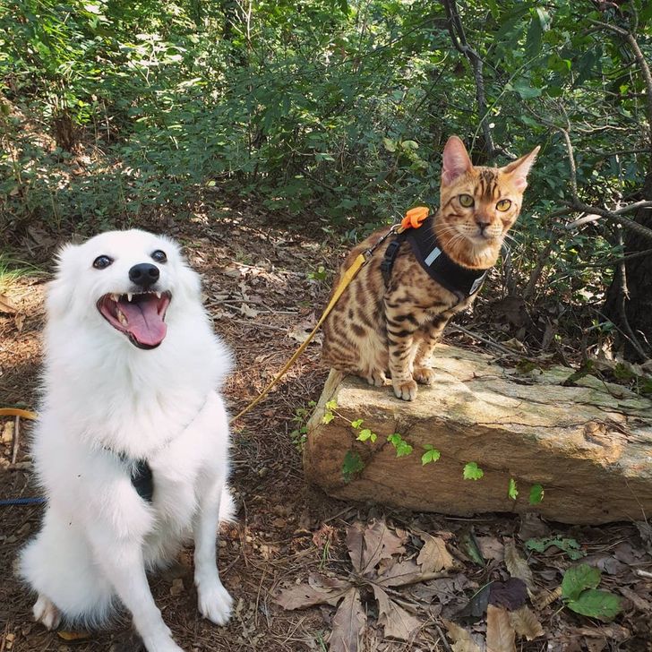 “Geralmente levamos nosso cachorro para passear conosco desde que o adotamos, há 3 anos. Um gatinho se juntou à família em março e ele também adora caminhadas 😊”