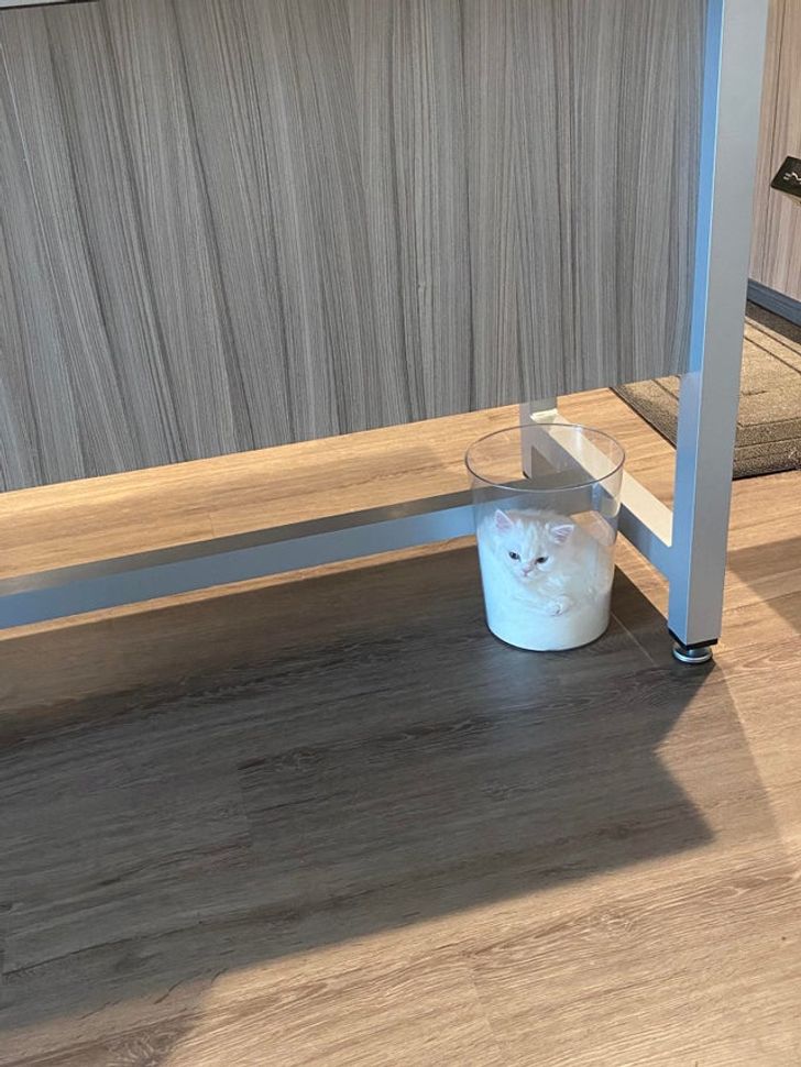 “Encontrei meu gato relaxando no cesto de lixo”