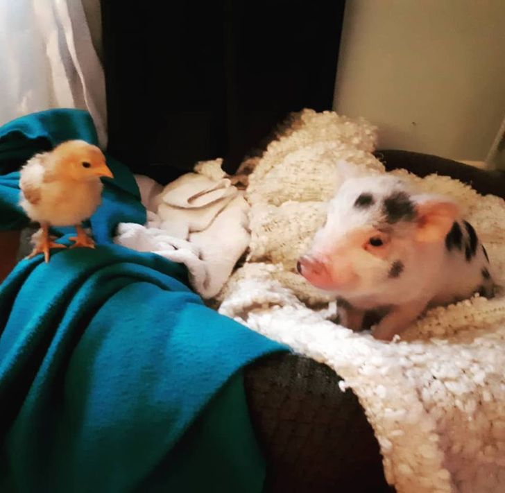 “Meu novo porquinho Kevin se divertindo com seu amigo”