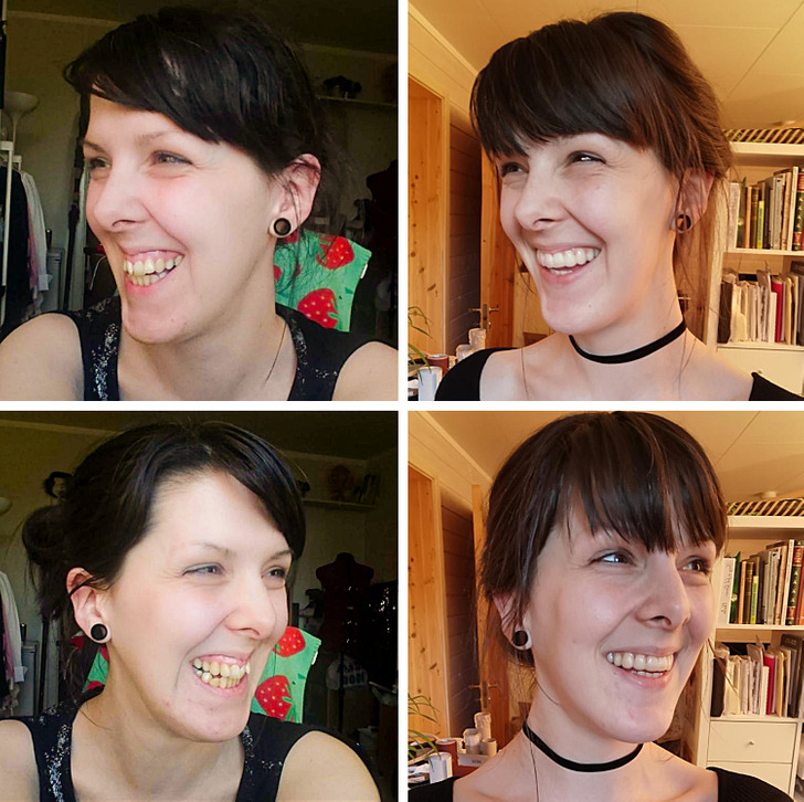 14. “Este é o resultado de dois anos de aparelho, remoção de dentes do siso e duas cirurgias de correção da mandíbula. (Eu, 2017-2019)”