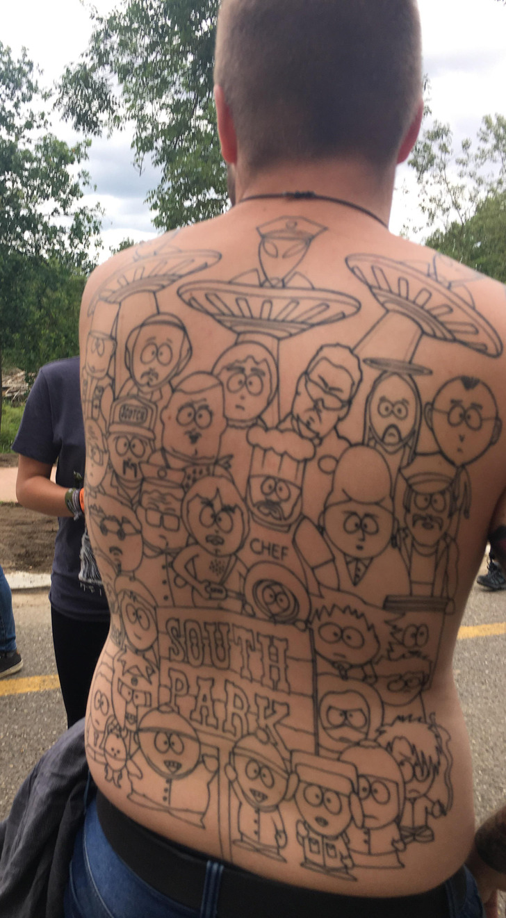 14. “Este cara tem as costas repleta de tatuagens com personagens de South Park”