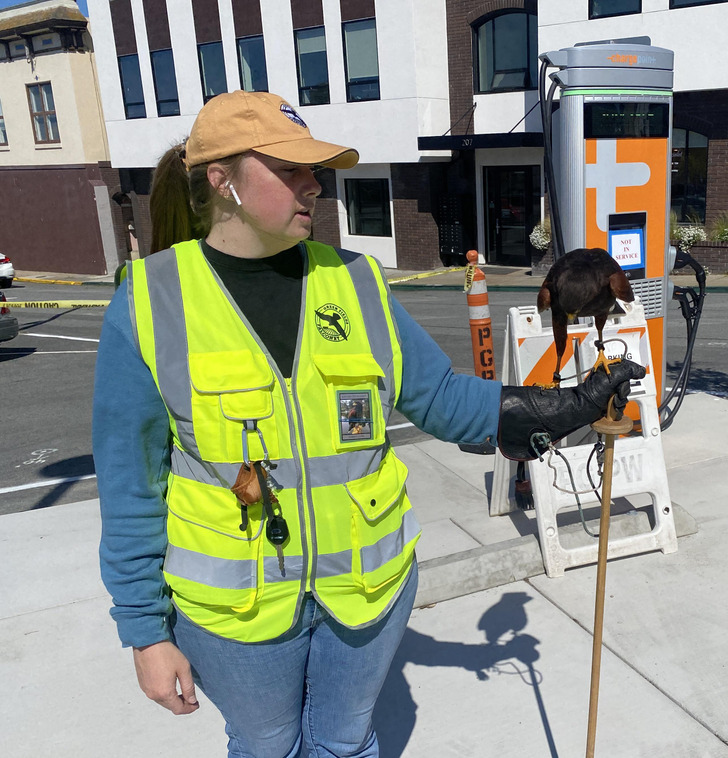 8. “Esta mulher e seu falcão foram contratados para passear pela minha cidade local dez horas por dia para espantar as gaivotas”