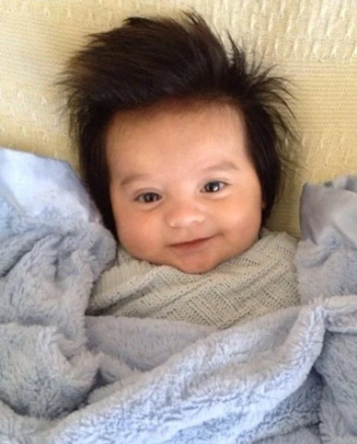 5. “Primeiro post do meu bebê que nasceu com franja branca”
