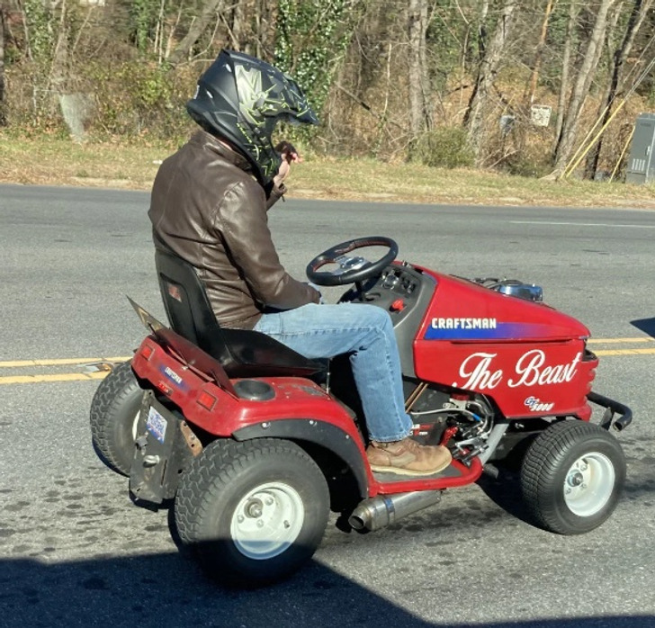 15. “Este cara andando de kart em forma de cortador de grama no trânsito”