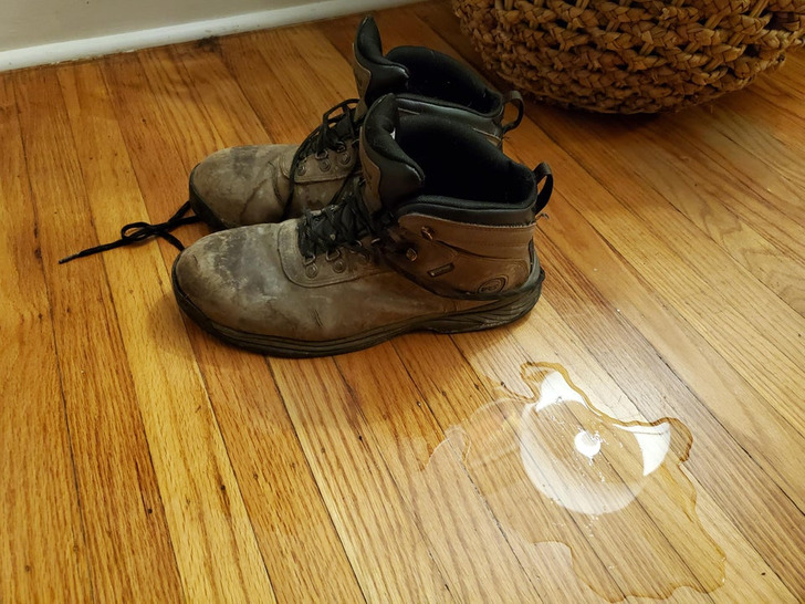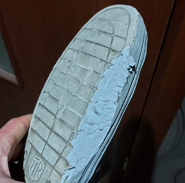 9. “O dia não começou bem. Coloquei os calçados para secar no aquecedor durante a noite. Alguma coisa desgastou a sola de um sapato que caiu do aquecedor. O segundo, que permaneceu lá em cima, está intacto”