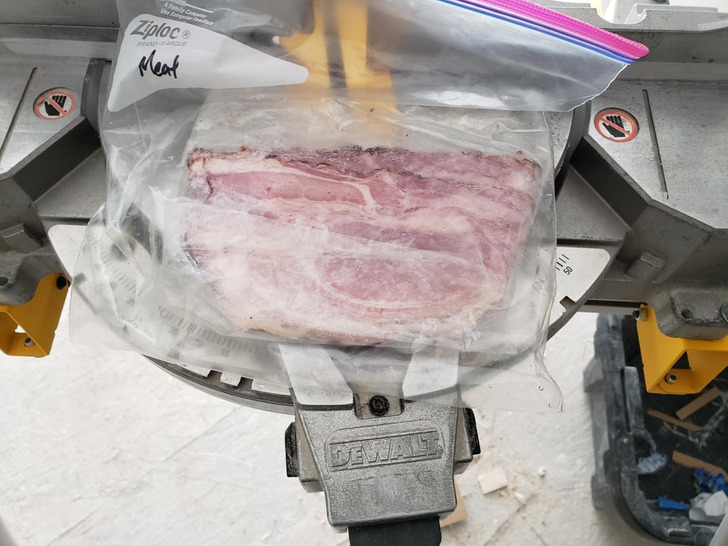 3. “Quando você está meio dormindo, meio acordado e leva bacon cru em vez do resto da pizza para o almoço”