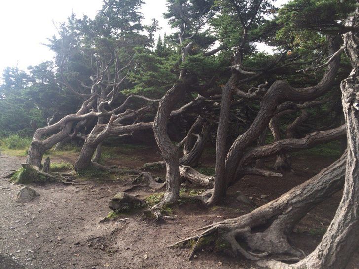 Os ventos no Alasca são tão fortes que mesmo as árvores enormes não conseguem permanecer retas