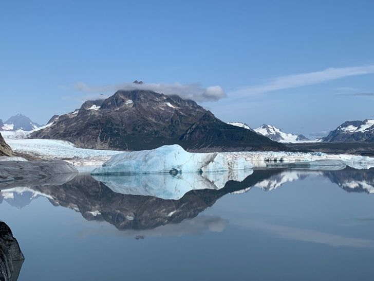 E claro, o Alasca também é tranquilidade e beleza da natureza. Geleira perto da cidade de Córdoba