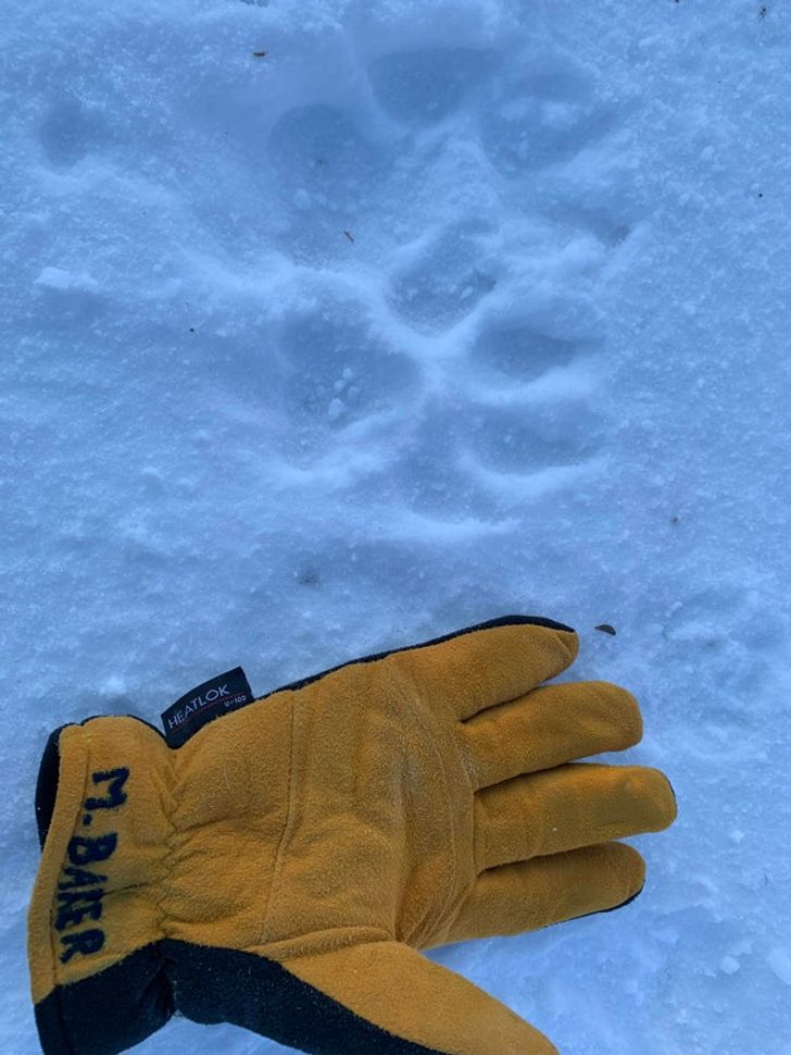 “Outro dia, vi algumas pegadas de lobo. Uma luva do tamanho XL para comparação”