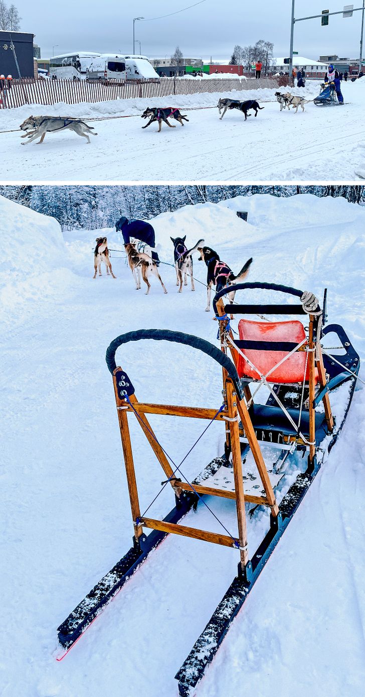 “Pessoas de diferentes países percorrem um caminho de 1.510 km de Anchorage até Nome, atravessando tundra gelada. Em 2020, o prêmio para o primeiro lugar foi de 500 mil dólares, mas na maioria das vezes as pessoas não competem por dinheiro, e sim para desafiar-se”