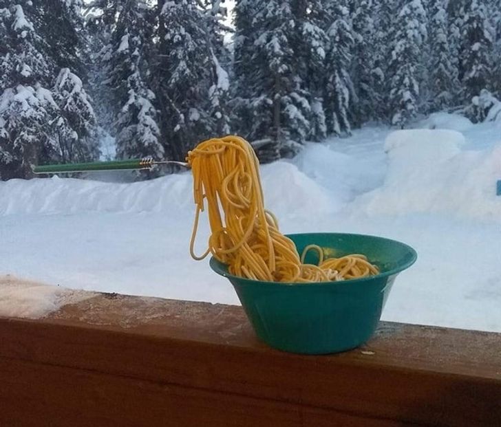 Macarrão que congelou tanto que um garfo ficou preso