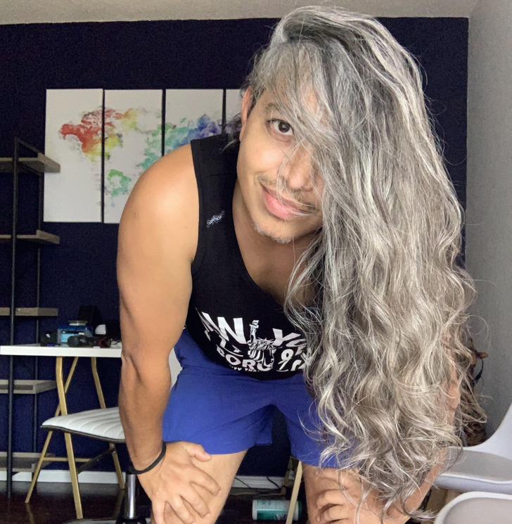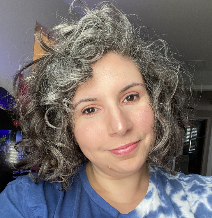 “Tenho 35 anos e cabelos grisalhos naturais. Depois de anos pintando eles, decidi deixá-los crescer em 2020”