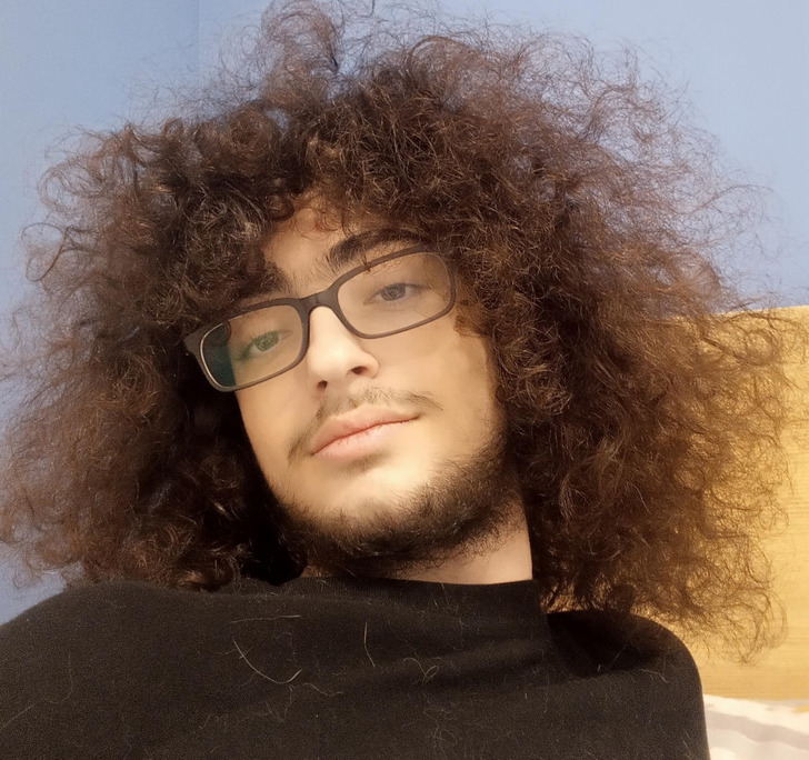 “Este é o meu cabelo natural. Um amigo sempre me diz para cortar, mas eu sou rebelde e não quero cabelos curtos como os outros caras”