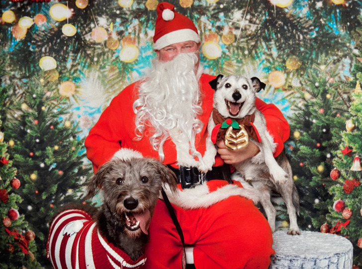 16. “Caso alguém precise ver isto, aqui está o Max (um feliz cachorrinho) e a Luna (uma feliz cadela) visitando o Papai Noel”