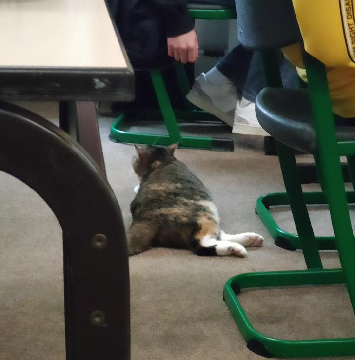15. “Esta gata decidiu nos visitar na aula de hoje. Ela acaba de entrar pela janela”