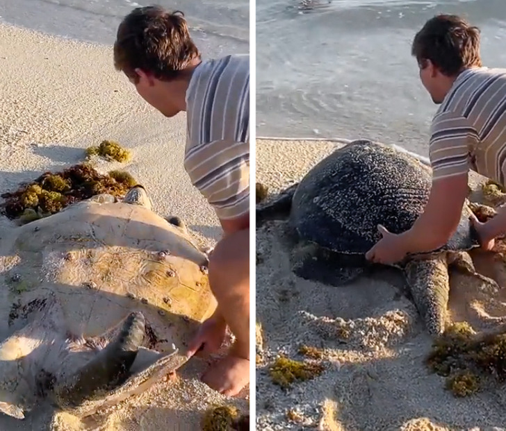 10. “Achei uma tartaruga marinha... de cabeça para baixo”