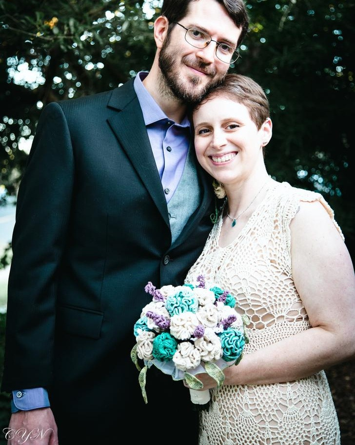 3. “Eu fiz meu vestido de crochê e uma boa amiga fez meu buquê de crochê”