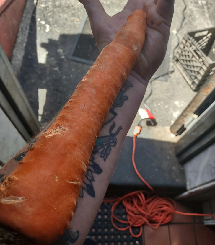 8. “Uma única cenoura — antebraço de um homem para comparação”
