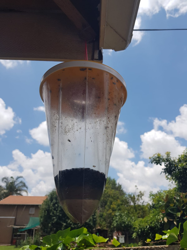 15. “Desde que nosso vizinho começou a criar galinhas, tivemos problemas com moscas. Este apanhador está aí há apenas duas semanas”