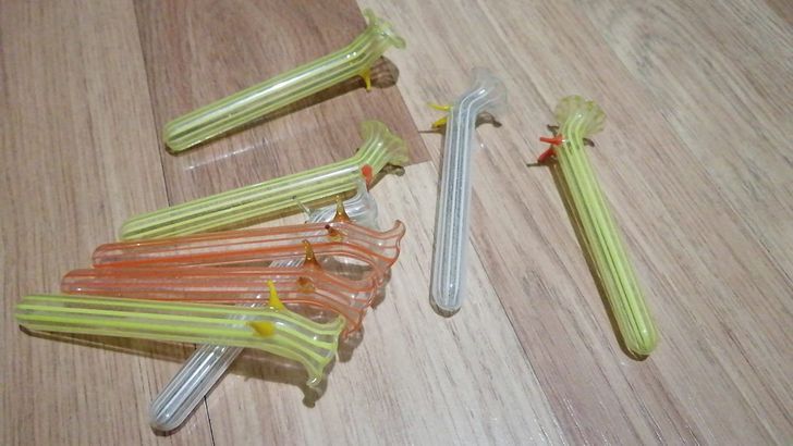16. “Estávamos organizando as coisas do papai na garagem e encontramos três tubos com pequenas barras coloridas que tinham, dentro, minúsculas molas. São coloridas, não queimam, não têm cheiro. Alguma ideia?”
