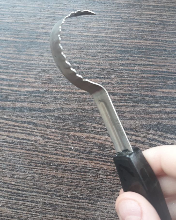 - É uma faca para manteiga. Permite cortar fatias em forma de uma concha. © Ирина Ярошинская / Facebook