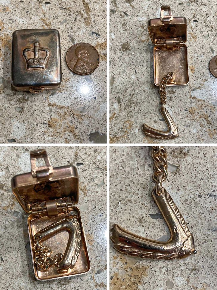 9. Pequena caixa de prata diferente com uma asa em uma corrente dentro