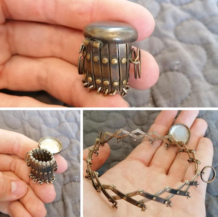 15. “Encontrei este objeto de metal. Sem texto, sem números. Abre até o tamanho de uma pulseira”