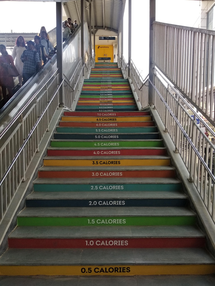 “Uma escadaria em um metrô em Hyderabad, Índia”