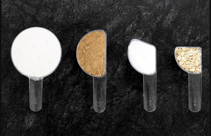 “Estes copos medidores são projetados para representar visualmente frações para uso intuitivo”