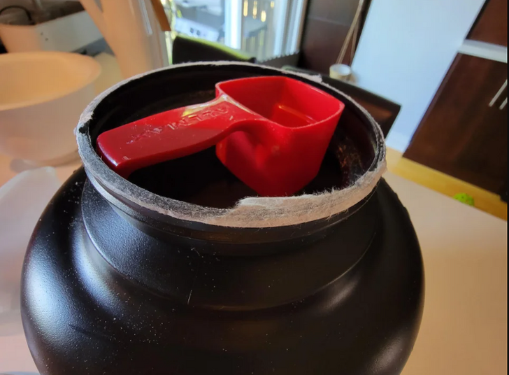“Minha colher de proteína em pó foi projetada para ficar em uma parte abaixo da tampa”