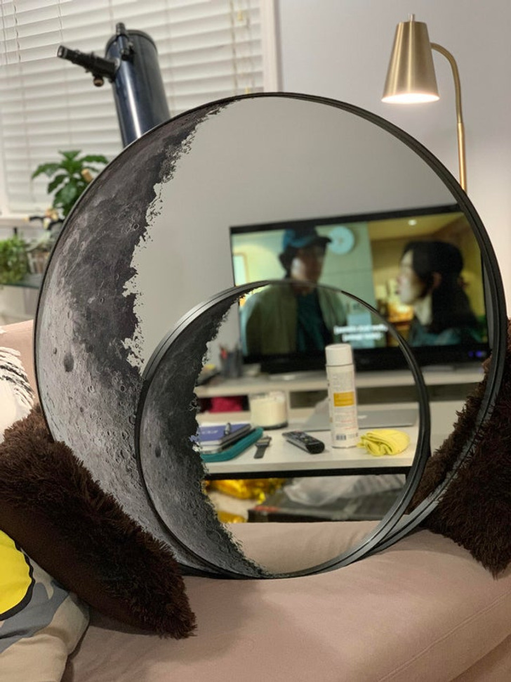 7. “Levei dois anos para fazer esta arte lunar gravada em vidro e, finalmente, a transformei em um espelho que chamo de ’Meu espelho espacial’”
