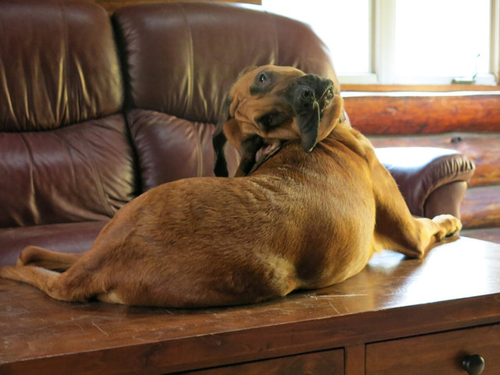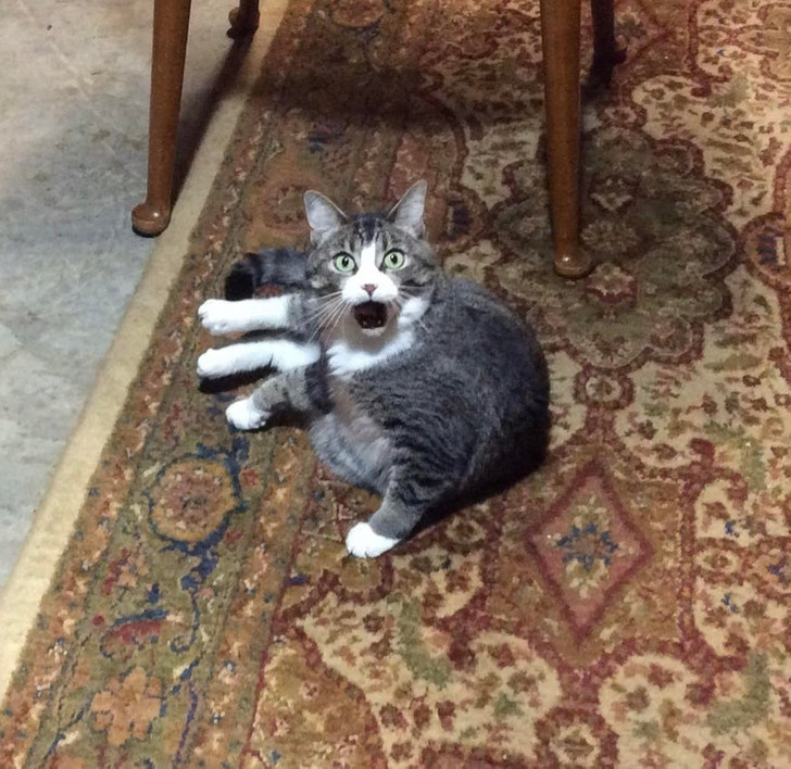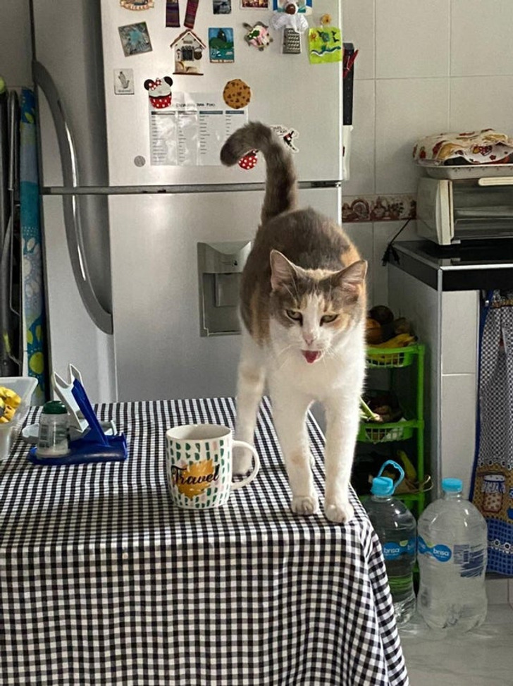 7. “É assim que ela reage quando eu pergunto o que ela está fazendo deitada na mesinha do café”