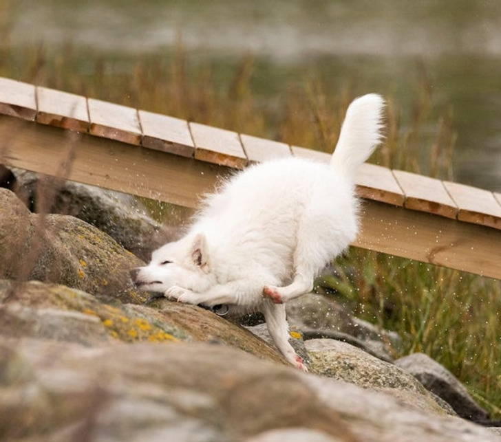 15. “Meu cachorro escorregando nas pedras molhadas”