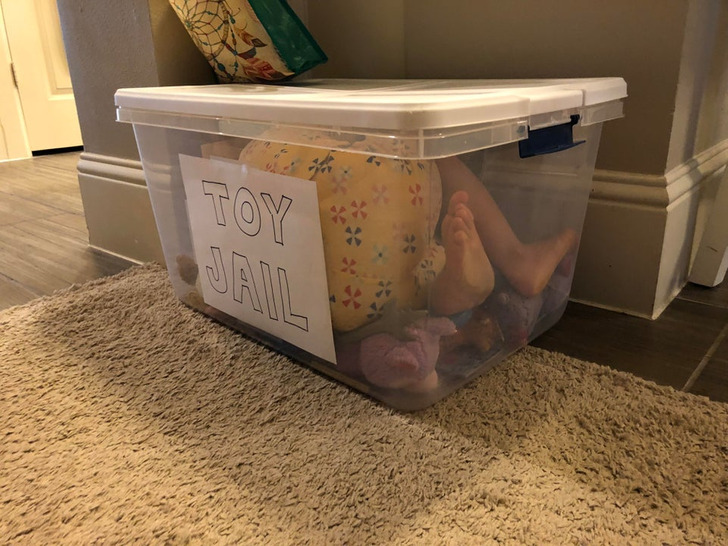 5. “Dissemos à nossa filha de 3 anos que ela não podia tirar os brinquedos da ’prisão’, então ela entrou para brincar com eles”
