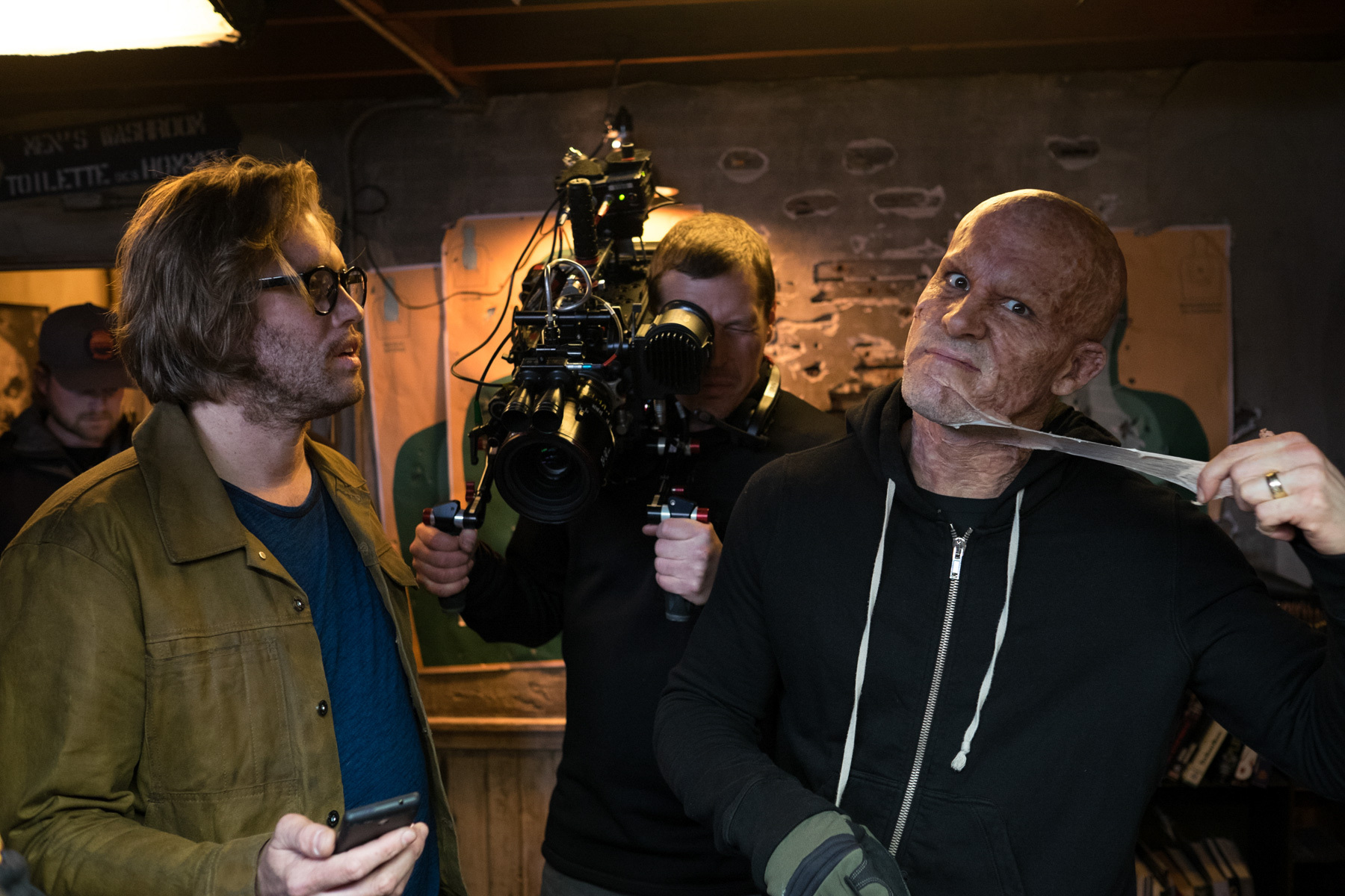 Stephen Merchant durante o processo de maquiagem do personagem do filme Logan