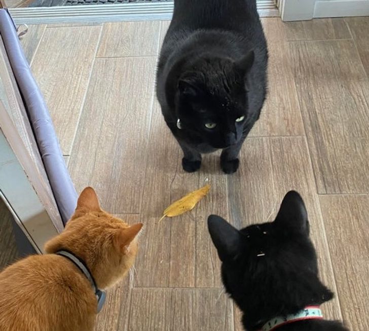 4. “O Larry sofreu para se acostumar aos seus novos amigos, mas hoje nos deixou orgulhosos e trouxe sua primeira conquista: uma folha”