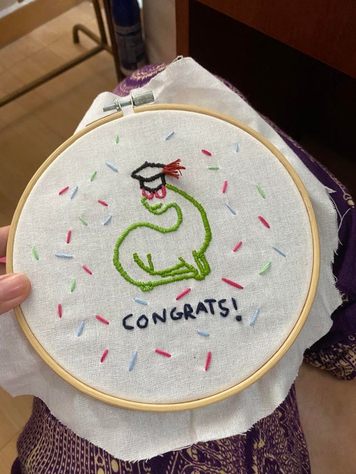 22. “Bordado simples e feito à mão para comemorar a formatura da minha melhor amiga”