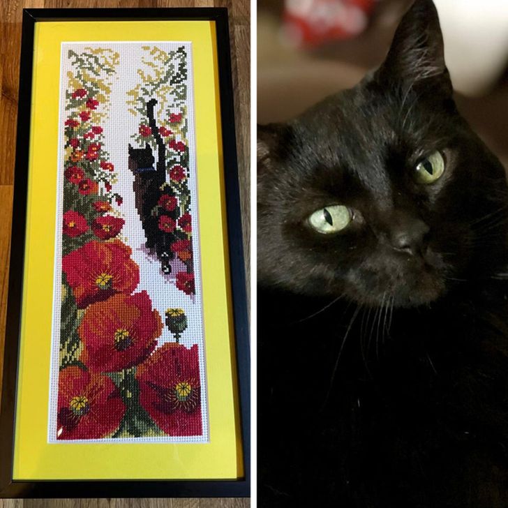 13. A internauta decidiu homenagear seu gatinho em um quadro todo bordado
