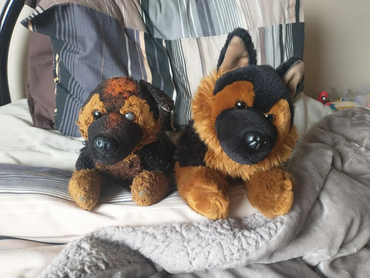 14. “Cachorrinho de pelúcia novo versus usado”
