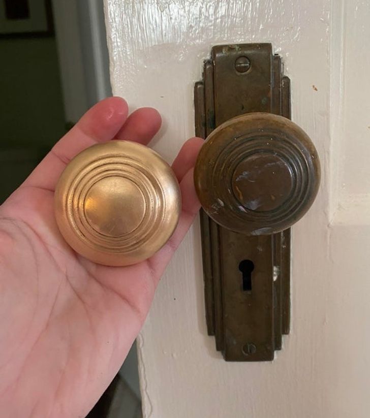 23. “Comparação entre minhas maçanetas antigas. A da esquerda foi limpa pela primeira vez depois de 80 anos (estimados)”