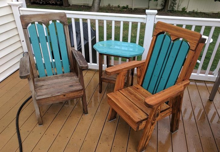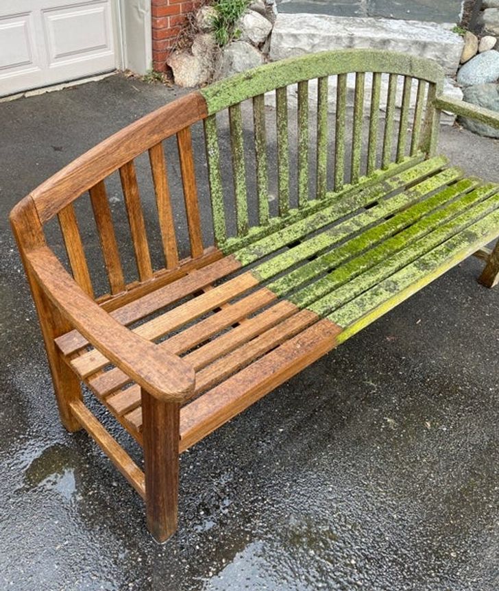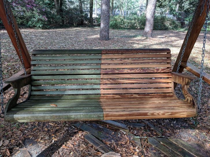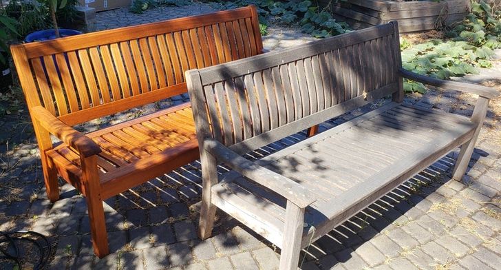 22. “Lavagem a alta pressão, lixamento e óleo durante o fim de semana neste banco de 20 anos de idade”