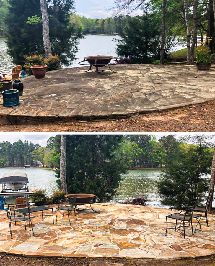 24. “Fotos de antes e depois da piscina que limpei hoje”