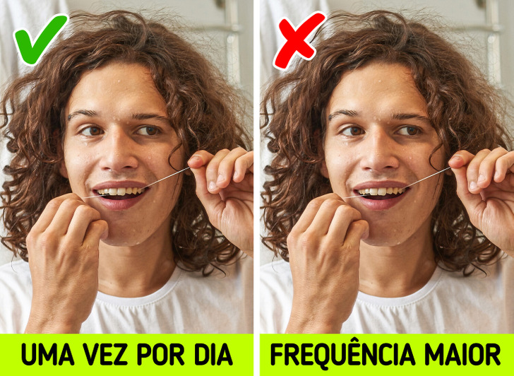 Embora o uso do fio dental seja uma parte essencial da sua rotina de higiene bucal e vital para suas gengivas, é possível exagerar em algo positivo. Não há necessidade de usar fio dental mais de uma vez ao dia, já que as bactérias nocivas levam de 4 a 12 horas para se desenvolver. Enquanto usar o fio dental corretamente pode prevenir doenças gengivais, fazê-lo da maneira errada pode ter o efeito oposto e até mesmo levar a danos nas gengivas.