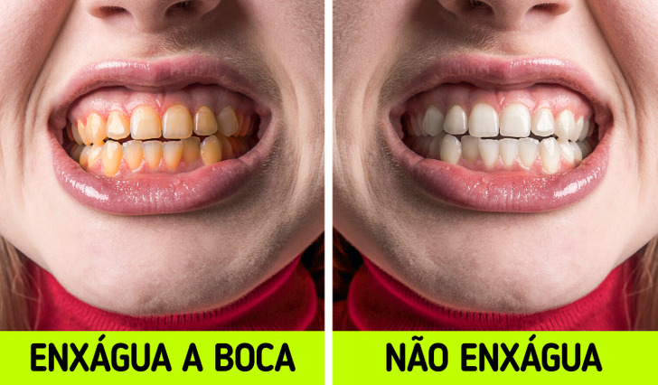 Você provavelmente tem o hábito de enxaguar a boca logo após escovar os dentes, mas saiba que isso pode reduzir a eficácia da escovação. A água dilui o flúor concentrado do creme dental, fazendo com que você perca parte dos seus benefícios. Se mesmo assim sentir necessidade de enxaguar por puro hábito, prefira usar um enxaguante bucal com flúor. Assim, seu esmalte dentário continua protegido.